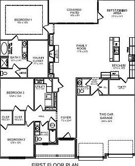 The Glenstone is an open floor plan has a vaulted entry and nine-foot ceilings on the main level. The large family room has a fireplace and overlooks the covered patio and rear yard. The adjoining kitchen offers a breakfast island, plenty of counter and cabinet space, a spacious breakfast area, pantry, and optional drop zone leading to the garage entry. The primary bedroom suite has a trey ceiling in the bedroom, a luxury bath with garden tub and separate shower, double bowl vanity, enclosed commode, linen closet, and a room-sized walk-in closet. The remainder of the home includes two bedrooms with walk-in closets, a full bathroom with linen closet, and a large utility room with folding counter.