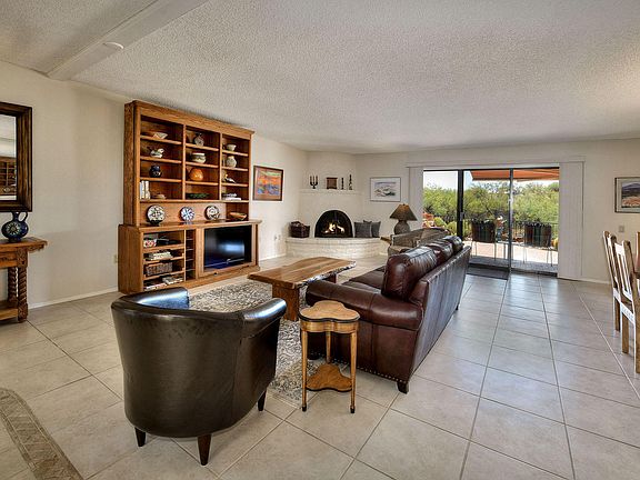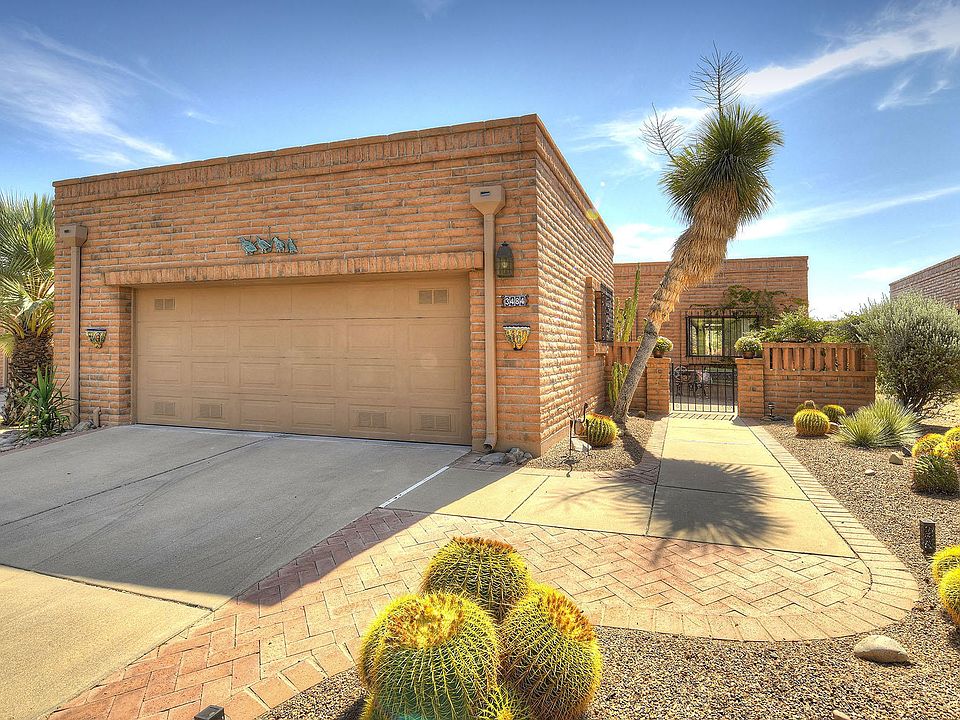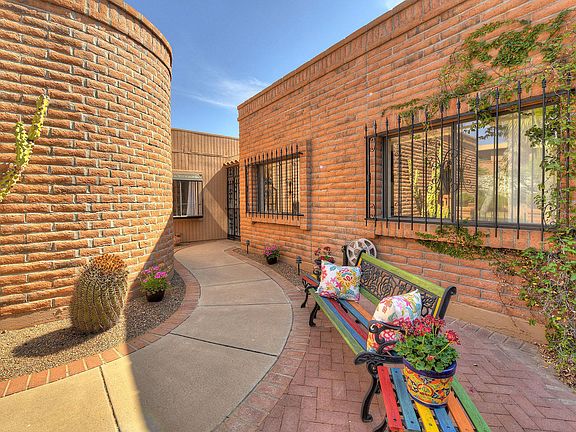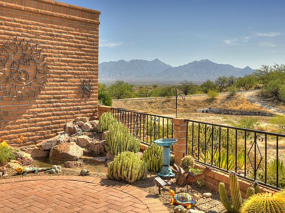 Perfect size, perfect location, perfect VIEWS from this charming townhome! This home sits high on a hilltop and features jaw-dropping Santa Rita Mountain Views! Envision yourself on the back patio entertaining family and friends on warm winter evenings. Red brick pavers, a trickling fountain and mature desert landscaping complete the picture. Inside, the spacious living/dining area is anchored by a roaring beehive fireplace. Guests will have a stunning view of the mountains while dining. Your updated kitchen is modern and bright, with brand new appliances and a large breakfast nook for light meals. The den is equipped with a beautiful new murphy bed, making it an easy transition to a third bedroom when family visits! A second bedroom has a built in desk and an adjacent guest bathroom. Wake up to your private mountain view from large sliders in your master suite! A large walk-in closet and walk-in shower make it the perfect retreat. An enclosed front courtyard offers more outdoor living space or showcases your new desert gardening talents! With VIEWS, updates and loads of charm, this home will fulfill all of your desert dreams!