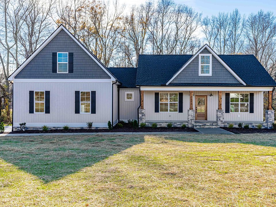 You will love this beautiful 1.5 story Georgia floor plan on a HUGE lot, with large bonus room, full bath & 4th bedroom upstairs! Kitchen showcases granite countertops, tile backsplash, SS appliances, huge island and spacious pantry. 1st Floor Main Suite features large walk in closet and double vanities. Additional features include cozy gas log fireplace plus covered front & back porches! No HOA! Act fast to choose all selections!!