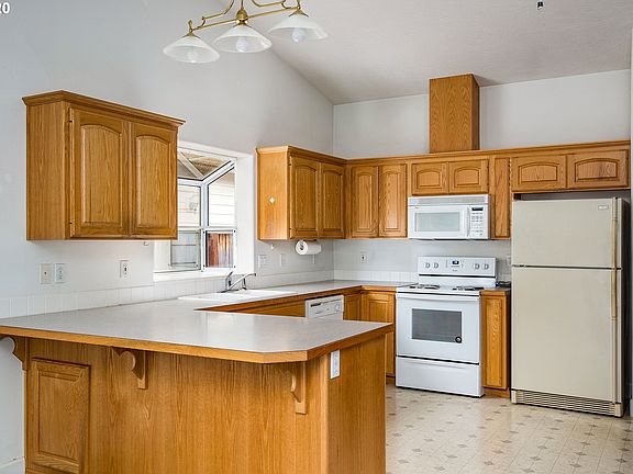 Rare find in Hayden Bridge! NEW Paint in AND Out! Large living room w/ built-ins, gas FP & vaulted ceilings, open to dining room & kitchen - great for entertaining. Slider from LR/DR to covered patio. Kitchen w/ breakfast bar, all appliances included, garden window & TWO pantries. Indoor utility w/ washer & dryer. Master bedroom features slider to covered patio perfect for hot tub, large W/I closet, extra storage, sep. vanity w/ 2 sinks.Great area close to bike paths, ponds and McKenzie River