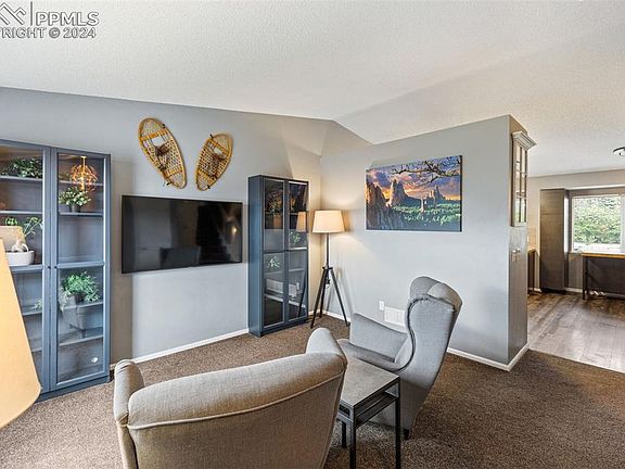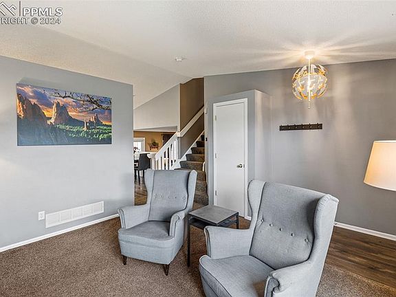 Nestled within a tranquil neighborhood, this impeccably maintained residence presents a harmonious design that combines timeless elements with modern influences creating a chic and upscale aesthetic. The exterior is adorned with a new roof, new paint, and new gutters. With rich textures and a neutral palette, this home offers an open concept boasting vaulted ceilings, walls of windows, hardwood flooring, LVP, and complemented by Butcher Block countertops creating an inviting ambiance that permeates throughout the home. The gourmet kitchen overlooks the exceptional living area featuring a gas fireplace, and walk out to the rear deck. With outside overhead lighting enjoy dining and relaxation anytime of the day, sprawling backyard, and soak in the hot tub while taking in the scenic view of the matured trees. The heart of the home is equipped with stainless steel appliances, sleek countertops, and ample cabinetry, catering to the needs of all chefs and entertainers. The owner suite redefines luxury with a sanctuary of comfort and serenity, and breathtaking Mountain views of Pikes Peak, ensuring a picturesque start to each day. A private en-suite bathroom and generous walk-in closet space further enhance the allure of this tranquil retreat. Ensuring comfortable accommodation for all, 2 upper-level bedrooms with an updated bathroom for the perfect functional layout. The finished basement offers a recreational room for a magnificent play area, an office, or perfect for any guest. Excessive storage space, laundry room, and full bathroom, along with a new heating and A/C unit installed in 2020 complete the lower level. Conveniently located to Powers corridor, within walking distance of parks and an elementary school, this residence offers unparalleled convenience for families seeking a dynamic lifestyle. Nearby amenities such as shopping, restaurants, movie theaters, and hiking trails ensure endless opportunities for recreation and leisure.