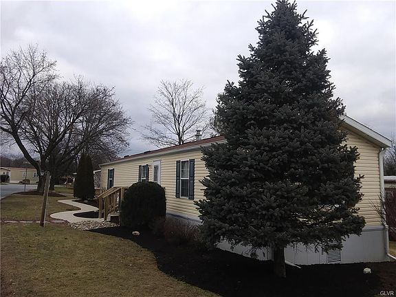 Move in to this 3 bedroom 2 bath vinyl-sided ranch in excellent condition located in the pet-friendly Lil Wolf community in desirable Parkland School District. The large landscaped lot with stone and mulch surrounding the home has two off street parking spaces plus a visitor space. Great floor plan with a spacious living room, well-equipped eat-in kitchen with refrigerator, oven/range, microwave, dishwasher plus laundry area with hookups. Master bedroom suite has a master bath with soaking tub and walk-in closet. Two more bedrooms and full bath between them complete the interior. A large deck overlooks the back yard with an 10'x8' storage shed. Just a short walk to the large swimming pool, kiddie pool, clubhouse, basketball court, playground and picnic area. Central air, energy efficient propane gas heat and LED lighting throughout the home. Close to Routes 309 & 22, I78 and PA Turnpike. Monthly lot rent of $725 includes water, sewer, trash removal and snow plowing of community roads.