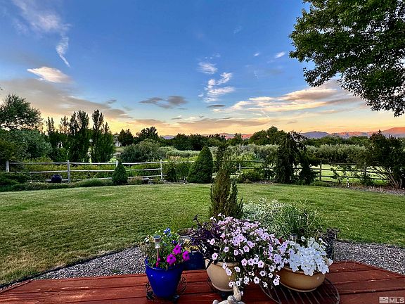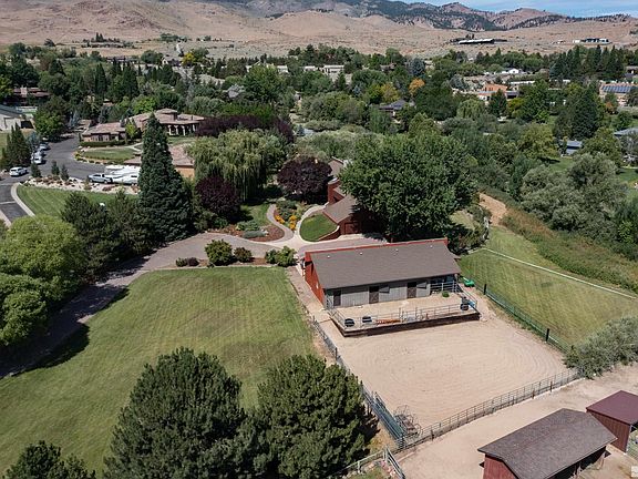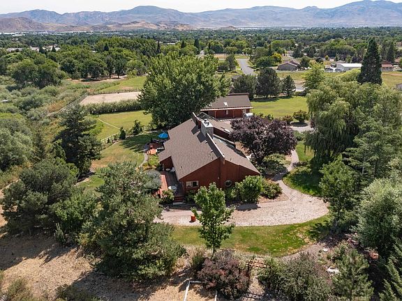 Open House Sat. 4/13 12-2pm. Nestled in the exclusive ranches of Old South Reno, this exceptional home sprawls across a lush 2.62-acre parcel. Custom-designed to embrace natural light & capitalize on the surrounding views with complete privacy. Redwood exterior and interior accents seamlessly meld with its environment, a striking 32-ton rock fireplace & expansive Pella wood windows. Recent upgrades include two new furnaces (2022) & new roof (2018). Large barn with 3 stables, 2 horse pastures & water rights., Located in that part of Reno that takes your breath away...Old South Suburban. This coveted part of town, with horse ranches and luxury homes in every direction, makes it is hard to believe the bustle of Reno is so close. Once you arrive, take a moment to soak in the serene setting and complete privacy not so easy to find in central Reno these days. Mature trees, bushes and flower beds surround the thoughtful design of the home. Main floor has a light-filled atrium, living room, dining room, updated kitchen, bright breakfast nook, full bathroom, and laundry room. Stunning living room has vaulted ceiling lined in heart-redwood and a real wood-burning fireplace with gas-assist start. The kitchen features granite slabs, double ovens, built -in refrigerator, and electric cooktop. Just seven steps up is the upper level with primary suite/primary bathroom and two guest rooms plus full guest bath. Murphy bed in second guest room stays. Second story loft is perfect for a family room, home office, or art studio. Finished basement makes a great movie theatre, playroom, or wine cave. Expansive wood decks at the back of the home to enjoy the views and lawns. Two-car garage includes cedar-lined closet and extra storage space. Home is perfectly situated for solar. The large barn with water and power can be home for your horses or converted to an incredible guest suite or additional car barn. Three stalls plus huge storage room and separate tack room. Well and septic meticulously maintained. April 2023 Appraisal Value at $2,150,000. Pre-listing Inspection done 7/28/23 for buyer’s reference.