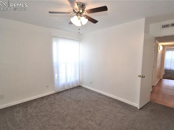 If you are looking for a home that is close to parks, close to the University of Colorado Colorado Springs (UCCS) and something that is centrally located, you're in luck! This main-level home is situated in a quiet area that offers a peaceful and serene environment. There are three bedrooms and one and a half bathrooms. The home has a combination of hard surfaces and carpeted areas for flooring built for comfort and easy cleaning. The large enlongated living room and open concept kitchen with appliances included is great for entertaining guests. The primary bedroom is equiped with a large closet, an ensuite and fully carpeted for comfort. The other two bedrooms are also fully carpeted with the convenience of a guest bath between the two rooms. There is a specific area within the house that has laundry hook-ups for your convience. Outside the living room lies a covered porch accompanied by a storage room positioned at the rear of the home. Adjacent to this setup is a small gate that leads to the grassy knoll area. Overall, this home offers a comfortable and practical living space, with desirable amenities like the pool for those hot summer days. Be sure to check out the virtual tour and then set a time to see the home!