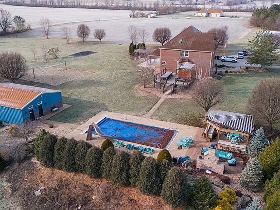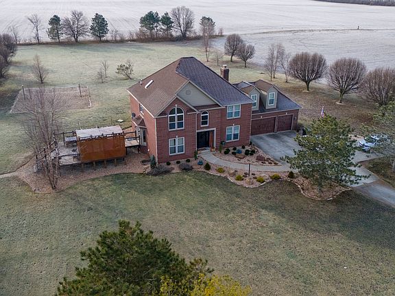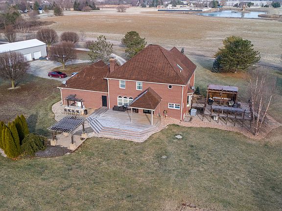 Picturesque 1998 custom brick 2-story home "FOYER W/PICTURESQUE WIDE STAIRCASE". with full basement nestled in 13.91 acres of glorious privacy! You will be in awe of this big 6- bedroom with 4 full baths and a 3-car attached garage and 4 car detached garage. There's 2 wooden decks. You will feel warmth & elegance the moment you enter the foyer and note the newer windows, gleaming hardwood floors and so much more. CUSTOM BUILT HOME with DINING ROOM, QUALITY MILLER MAID CABINETS and Island, MINI-BARN, GAZEBO, FINISHED BASEMENT W/ full bath, & SEPARATE 1,100 SF guest house in front of property and out buildings. All SS Appliances, Washer & Dryer, pool table in basement and a projection/screen/projector. Sauna in the master bath with a lot of built ins from ceiling to floor all custom done. Pool house w/bath and rooms for games and pool furniture and pool equipment to stay. you can drive in from 135 as well. OPEN HOUSE JUNE 2, from 1-3 pm