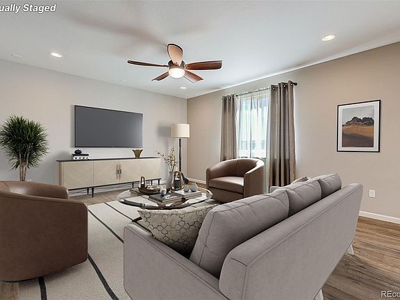 Welcome to your new home in Crystal Valley Ranch! Just three years old, this stunning property boasts 4,000 square feet of finished living space, including five spacious bedrooms and four well-appointed baths. Entertain in the expansive gourmet kitchen featuring an enormous granite island, perfect for gathering with friends and family. You will also appreciate the convenience of a main floor office, which is perfect for remote work or study. The main level has 9 foot ceilings, 8 foot doors, and luxury vinyl floor planking throughout.