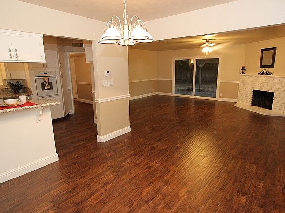 Traditional Sale! Move in READY 4 bedroom 2 bath home. This home has been nicely updated throughout with new dual pane windows, fresh paint, new flooring & more! Nice open living room has new wood laminate flooring & cozy fireplace. Kitchen has new granite counters, a built in cook top, oven & dishwasher. New carpet in the bedrooms. The master bedroom has its own private bath. Both bathrooms have new plank tile flooring, new vanities & wood framed mirrors. Spacious backyard with covered patio has plenty of room for a family or entertaining.