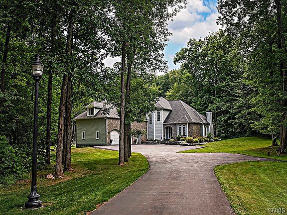 Set back into a lushly wooded 2.85 acre lot, at the top of a post-lit paved drive, is this stately and elegant home designed to impress. Skilled craftsmanship is displayed in the grand staircase, paneled library and custom finishing work throughout. Graceful archways separate the common rooms and tall windows with decorative transoms allow for abundant natural light. Gorgeous, fully-equipped kitchen features an island with gas cook-top, rich cherry cabinetry and granite counter tops. A bonus room over the garage adds additional square footage and offers an informal gathering space with window seats and built-ins plus a bedroom and full bath. Get ready for a relaxing spa experience in the oversized master bath complete with walk-in shower, double granite topped vanities and a jet tub overlooking the beautiful landscape. And you've never seen bigger walk-in closets! Creature comforts are covered with state-of-the-art heating and cooling systems, upgrades too numerous to list, 2 fireplaces and a restful backyard patio. Full basement offers plenty of storage. A truly magnificent property.