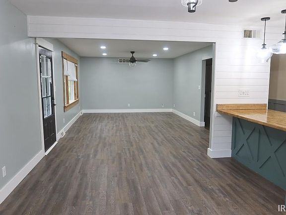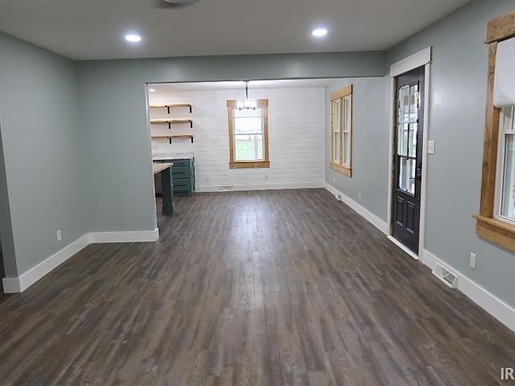 This lovely ranch home situated on 1.77 Acres just minutes from town features lots of updates over the last 5 years. The property consists of two parcels (1.52 Acres and 0.25 Acres) and has lots of trees. Notice the new front porch as you approach the home. Enter into the spacious living room that has been recently updated. The living room is open to the updated dining room and the kitchen area. The kitchen features a breakfast bar with area for seating, newer cabinets, tile back splash, double sink and a step-in pantry as well as newer appliances (range/oven, fanhood, refrigerator, dishwasher). As you enter the bedroom hall area, you are greeted with a remodeled bath with tile flooring and tub/shower with tile surround. Just past the bath are three nice-sized bedrooms. You can access the unfinished basement from the main level and there is also an outside entrance to the basement. The basement has the newer gas water heater and the gas furnace as well as the laundry area. The basement has an older bar area. The home has replacement windows, breakers, and a well for outside watering. The house is connected to public water system. The large 2 1/2 car (30' x 24') garage has separate electric, an electric garage opener and a large area for a workshop. The garage has the car overhead door as well as a man door entrance. There are also two yard sheds (10' x 10' and 20' by 12'). Per owner: 2021-New water heater; since 2020-updated kitchen, bath, flooring, living and dining area, interior main level paint; 2017-new refrigerator, range/oven, dishwasher; 2016-new roof; smart thermostat and smart garage door Includes: Kitchen appliances (range/oven, fanhood, refrigerator, dishwasher), ceiling fans, electric garage opener and remote, 2 yard sheds. Excludes: washer, dryer, freezer. Also includes a one-year Cinch Home Services warranty ($513.00 value). Possession at Closing. Property is being sold "AS IS." Square footage is per Assessor of Posey County. All square footage and measurements are approximate and are not guaranteed.