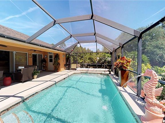 Amazing custom built home sitting on .50 acre land. NOT located in Flood Zone! Plenty of space for your RV, boat & toys Built-in 2007 with over 2,200 sf under air. 3 Bedrooms, Den, 2.5 bath, 3 car garage & saltwater heated pool. Home offers a huge open great room/dining rooms, Impact resistant Hurricane Windows, large 16x16 Den can easily be converted to a 4th bedroom. Guest bedroom offers a queen size murphy bed unit with cabinets and drawers. 3 Panel pocket slider in the living room leads to the covered lanai entertaining. Home also offers outdoor shower with hot/cold water +pool bath.. Brand new granite counter top with beautiful glass tile backsplash. Porcelain wood grain tile in all bedrooms and den, Ceramic tile throughout the rest of the house. Complete new water treatment systems with Brand new salt chlorinator. Beautifully landscaped with river stone. Landscape curbing features large pineapple palm, Zoysia grass and with irrigation system. Fenced in side lot with an 8'x10 garden shed and large 20'x12' garage/workshop building. Garage offers a non see-through garage screen door. Centrally located! Close to the mall, movie theaters, hospitals, boating, golf, grocery stores and the best beaches are just a few minutes away. Call now before its gone! "CLICK ON 3D VIRTUAL TOURS!"