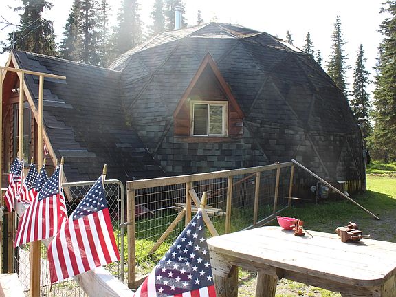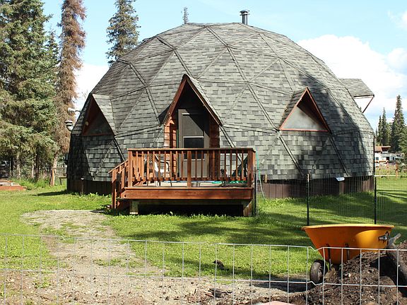 Rare Geodesic dome house centrally located to Kenai and Soldotna. Home is a work in progress & being sold AS-IS., Beautiful wood work through out the inside. New carpet and vinyl plank floors, Newly landscaped yard with fence. New deck's freshly redone arctic entry. Seller has made many repairs and upgrades to the home and property. Can be sold fully furnished with full price sale. BTV all info
