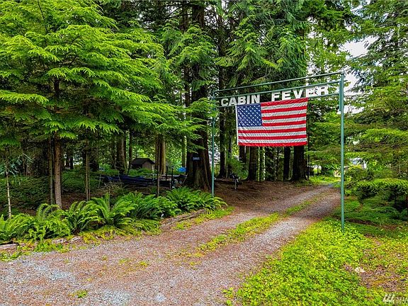 "Cabin Fever" is sited proudly on a NE facing lot, a location known for all day sun. Huge metal-framed dock with diving board has moorage for all your toys. A gravel drive leads directly into the water - just back your boat in and go! No bank waterfront. Bonfire-ready beach. 990s sf 1 BR, 1 BA cabin, lake/mountain views from almost every room, utility room with storage & w/d, woodburning stove. 238 sf cabana with 1/2 bath! 2 year old well. Outbuildings, back lot, fully furnished. Jet ski lift.