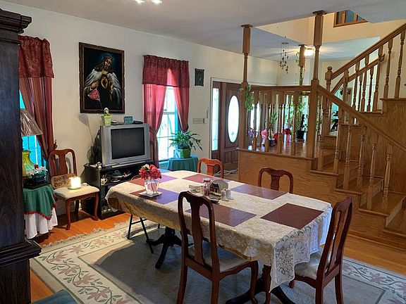 This beautiful home sits back off the road on over 8 acres of privacy and serenity. As you enter thru the front door your eyes are drawn to the well crafted stairway, with the dining room to your right and an office/den to the left. The dining room is open to the kitchen which has an island and tons of cabinets. The expansive living room offers a wood burning stove, great place for entertaining with easy flow from the kitchen and dining area. The spacious master suite has an attached bath with separate vanity areas, jacuzzi tub, walk-in shower and large closet. Upstairs you will find a large area perfect for a game room, a living area with another wood burning stove, two bedrooms, one with a convenient half bath and one with a full bath. The laundry room is spacious and complete with a utility sink. The flow thru this home is functional and seamless. Enjoy evenings on the back deck or you morning coffee on the front porch where you can appreciate the solitude of country living.