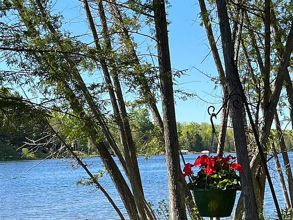 Waterfront home on the Hanley Lake, part of the Upper Chain of Lakes. 225 feet of private waterfront on 5 acres is a nature lover’s paradise. From the aluminum and vinyl dock you are just minutes from Intermediate Lake to the south and Ellsworth to the north. The path from the house to the shore is full of natural beauty and wildlife. Two spring fed streamlets and pop-up spring pools provide water for the abundant wildlife year round. The path is a stage for daily wildlife sightings such as does nursing fawns or the fawns running for the first time. Red foxes, raccoons, opossums, squirrels and chipmunks are present to entertain you. Birds of many species nest on the property. The 5 species of ferns give the acreage a primordial feel. The flora progresses from pussy willows in March to asters in the fall with many species in between. Your recreational vehicles can be stored in the 32’ x 48’ pole barn with 12-foot RV drive through doors and a mechanic’s pit. The barn houses a 20’x 24’ heated workshop with its own bathroom and shower. There are five storage sheds plus a playhouse/she shed. The spacious interior with over 3,600 sq ft has 4 bedrooms plus an office or nursery. The two 4-season porches will become your favorite rooms. The main level kitchen has lifetime quartz counters. Large main floor laundry room. The walk-out lower level has a second kitchen, family room, two of the bedrooms and a full bathroom, making it a private place for guests, a rental, or an in-law unit. There is plenty of storage. 3-ton Trane heat pump provides central A/C in the summer and supplements the gas heat in the colder months for year-round comfort. Currently propane, natural gas hook-up is at the road. The house is set back off a county maintained paved road for privacy, with a long concrete drive, turnaround and an apron. Combined with the attached three car garage, there is plenty of parking for family and friends. Make this well-built, well-maintained property your family retreat.
