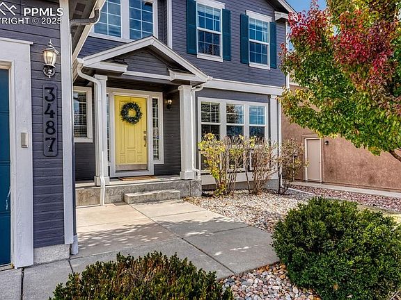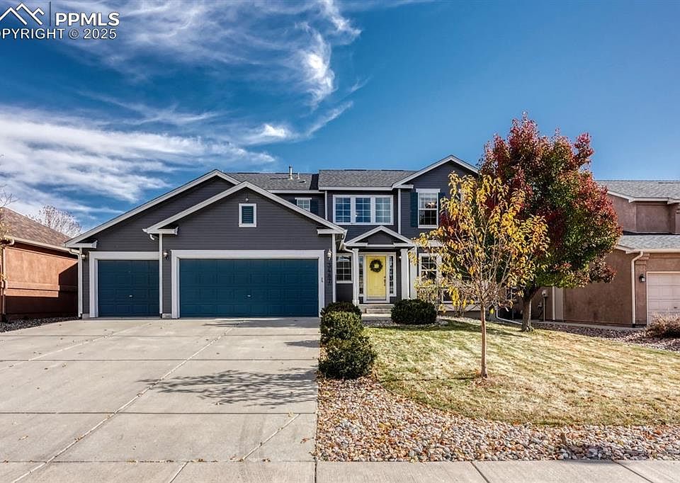 Discover this beautifully maintained two-story Classic-built home on a spacious fenced lot in desirable Barnstormers Landing. Ideally located near shopping, dining, and major employers—including Fort Carson, Peterson and Schriever Space Force Bases, Amazon, and the airport—this home offers both comfort and convenience. With easy access to I-25, downtown and all corners of the city are just minutes away. Step inside to an inviting two-story entry with grand ceilings and an elegant staircase. The open, light-filled layout flows effortlessly between the living and dining rooms, featuring hardwood floors, crown molding, and neutral paint tones throughout. The kitchen is a true centerpiece with granite countertops, ceiling-height cabinetry, and a window overlooking the backyard, seamlessly connecting to the dining and family spaces—perfect for gatherings. The adjoining family room impresses with 16-foot ceilings, a tile-surround gas fireplace, and built-in shelving that add warmth and style. Step outside to a beautifully landscaped backyard with an extended patio—ideal for entertaining, gardening, or relaxing on peaceful Colorado evenings. Upstairs, the primary suite offers a tranquil retreat with vaulted ceilings, a five-piece bath, and a walk-in closet. Two additional bedrooms and a full bath provide ample space for family or guests, while the loft landing overlooks the living area below. The finished basement adds a spacious second family room, guest bedroom with walk-in closet, and another full bath. The 3-car garage features an epoxy-coated floor, and the home includes a newer A/C for year-round comfort. Residents enjoy access to Barnstormers Park with a playground, basketball court, and open field—creating a true sense of community. This home combines an excellent location, thoughtful upgrades, and a welcoming neighborhood feel—making it the perfect place to call home.