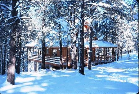 Motivated Sellers!! Possibly the best location in Kachina Village. This perfect turnkey cabin sits on a fabulous lot, tucked deep in the back of a cul-de-sac. Nestled on almost 3 quarters of an acre bordering National Forest, this completely renovated cabin the woods is surrounded by an 850 square foot wide, wrap around, fully covered deck that provides full forest views, a light bright interior, & the ultimate in inside-outside four seasons living. The 1520 square foot home has 2 bedrooms with en-suite bathrooms, a loft & 1 full guest bath. The home is cooled in the summer by seven screened windows & three ceiling fans that create excellent cross breezes & warmed in the winter by a brand new wood burning stove & gas furnace. An exterior utility shed & closets on each floor.