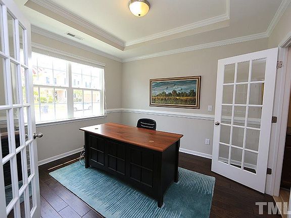 Welcome Home! First floor feats. hardwood floors, office space w/ french doors, living room w/ gas fireplace, and 1/2 bath. Eat-in kitchen includes ceramic floors, gas apps, large island and w/i pantry. Master bath with glass shower & walk-in closet. Other 2nd level feats over-sized laundry room w/ shelving, large bedrooms and loft space. 12 x 12 screened porch with out door grilling pad accent this fenced-in premium lot. Close to Hwy 540, Hwy 55 & US 1. Enjoy conveniences of both Apex and Holly Springs!