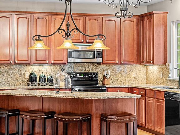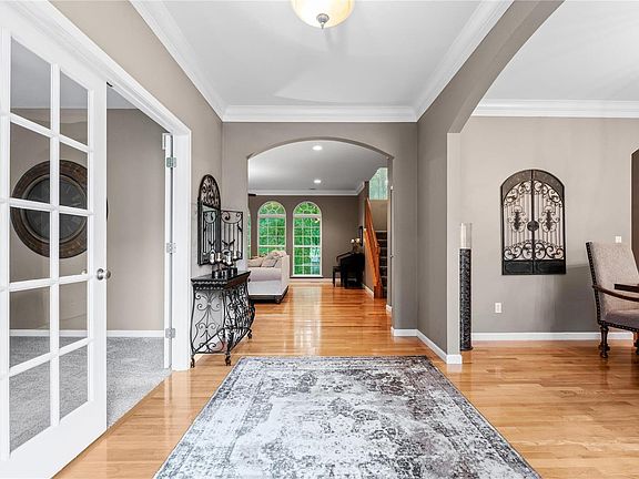 When entering this gorgeous 2 story home, the foyer is separated by a home office & separate dining rm. A spacious great rm awaits featuring a fireplace & window wall offering stunning views of the wooded surroundings. The chef's kitchen has custom cabinets, undermount lighting, granite countertops & backsplash; butterfly island, desk area, & lrg walk-in pantry. Adjacent is a composite deck accessible from the breakfast/hearth rm. MFL & a guest powder rm. Upstairs, the lrg primary suite is sure to impress w/walk-in closet & bathroom featuring double vanities, sep tub & shower. A guest suite w/its own bathroom & 2 add’l bedrooms share a Jack & Jill bathroom, plus sizable bonus rm completes the 2nd floor. Finished walk-out lower level offers a game rm, family rm & half bath, along w/ample storage space. Enjoy the year-round panoramic views or relax inside in one of the spacious living areas. This home offers many great features, is perfect for entertaining & in a great location!