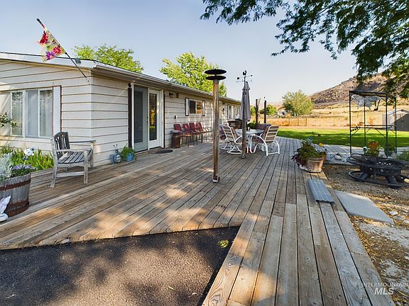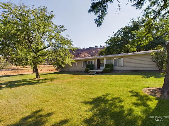 Very sturdy and nostalgic 1979 manufactured home with 2 large living spaces, breakfast bar, 3 bedrooms and 2 baths. The triangular shaped 6.68 acres has a private driveway, is fenced for horses/livestock with irrigation rights, and features a spacious 30x60 shop with a concrete sidewalk to home. East-facing wooden deck with views to the mountainside, lots of trees and landscaping around the home. Home is in great condition to live in or build your dream home with well, septic, power and shop all ready to go. Come see this home in the Emmett Valley - minutes to the Payette River, Black Canyon Dam, and town.