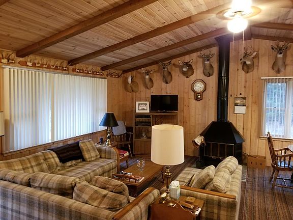 ''One owner'' 3 bedroom 2 bath home, features white washed tongue & grove interior, vaulted ceiling,metal roof,and a mostly wooded 80 Acres with trails throughout...Located north of Curran having both M- 65 & Hubbard Lake Trail Frontage...