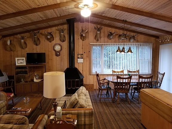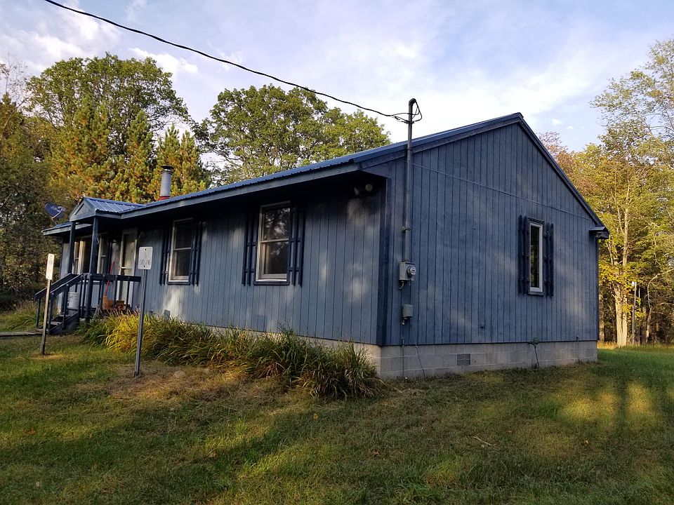 ''One owner'' 3 bedroom 2 bath home, features white washed tongue & grove interior, vaulted ceiling,metal roof,and a mostly wooded 80 Acres with trails throughout...Located north of Curran having both M- 65 & Hubbard Lake Trail Frontage...