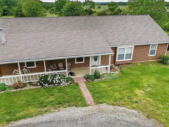 Hard to find country home on 20 acres on a blacktop road! This 1.5 story home will impress you the minute you walk in. The main floor has a master suite w/ luxurious bath, Great room, Large eat-in kitchen, laundry & bath, & a nice bonus room for office, playroom, or potential 4th BR. Upstairs you find 2 large bedrooms separated by a generous loft/rec room. Numerous outbuildings for animals or toys! Screened porch and hot tub outside! Explore for hours with acres of trees. Nice circle driveway set far from the road.
