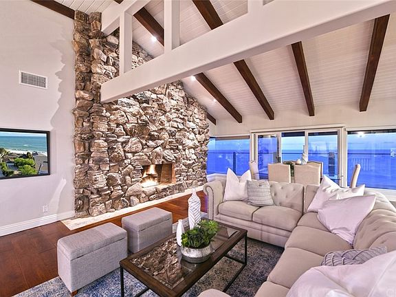 SPECTACULAR UNOBSTRUCTED PANORAMIC OCEAN VIEWS from this awe-inspiring, 107' wide bluff-front location. Feels like an oceanfront or being on a cruise ship looking through towering floor to ceiling windows and abundant natural light with mesmerizing, "jaw dropping" views from both levels toward the blue pacific, golden sunsets, Catalina Island and crashing coastline south to San Clemente Pier or north toward Dana Point Harbor. The private, pie-shaped lot is 279' deep and 107' wide at the bluff top and overlooks the crashing waves below. A long, gated driveway and motor court set back from the street accommodates parking for 8 cars. Enter through a private stone courtyard into a spacious entry with soaring 2 story ceiling, and unobstructed views to the ocean. Endless possibilities for this flexible floor plan offering 3 bedrooms plus an office on the main level with 2 bathrooms. A second master suite could be created on this level if desired. Bedrooms on this level are separated by a large family room w/ fireplace and covered terrace that runs the entire width of the home to take in the views. Ascend the curved staircase to the upper level Great Room with vaulted beam ceilings, stone fireplace, remodeled kitchen with Thermador appliances and skylights, laundry room, powder room and spacious master suite with remodeled bath. A deck runs across the entire back of the home with views in all directions. Newer hardwood floors, central A/C and new interior paint. Near Pines Park!