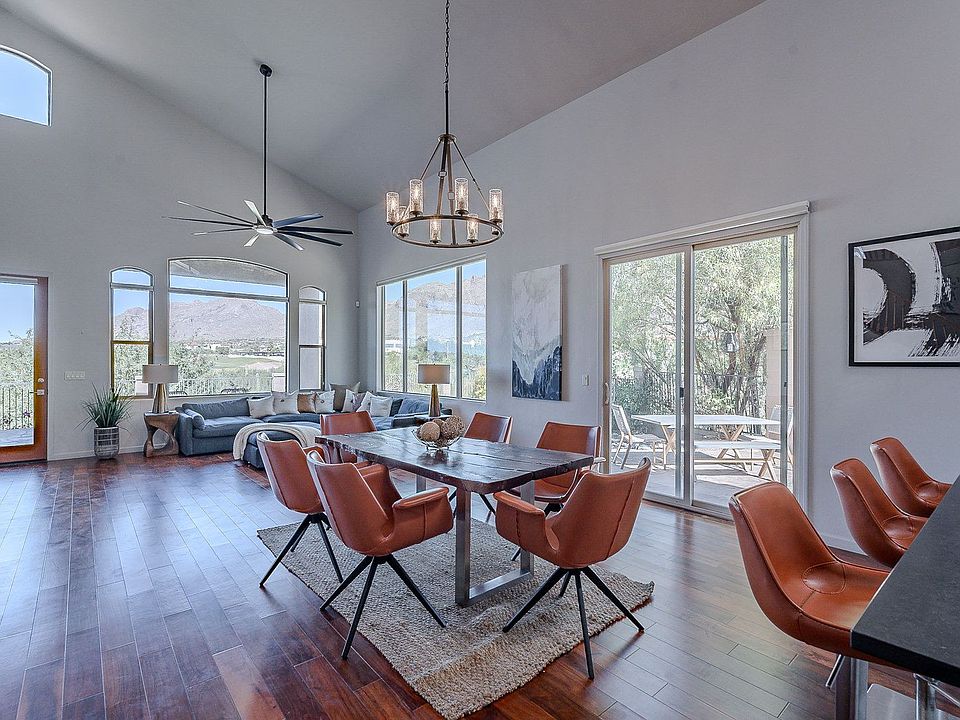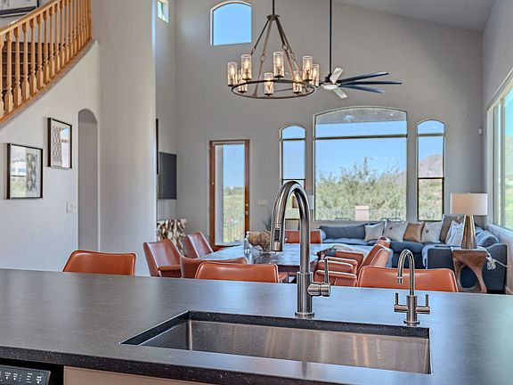 Relax and enjoy in this beautiful home located in the prestigious, gated community of Villages of La Paloma. This fully furnished home is close to shopping, restaurants, and signature golf course. Main suite is located on the 1st floor with private patio entrance, en suite bathroom offers large walk in shower, double vanity sinks and walk in closet. Great room has large picture windows to enjoy sunsets and the Santa Catalina Mountains, remote retractable blinds, gas fireplace and vaulted ceilings. Fully Equipped kitchen is ready for you to prepare your favorite meals. Upstairs is two bedrooms, a full bath and spacious loft to play cards, a board game with the family, or sit quietly and read a book. On the patio you can start your day with breakfast, enjoy a little 3 hole golf on the green, and settle down in the evening around the cozy fire pit. Truly a beautiful way to experience Tucson. On a 3 month rental, monthly Rent is $4,200 with a $200 utility allowance, overages will be billed to tenant. With a 6 month lease, monthly rent is $4,000 per month and tenant pays utilities. Lease term 6+ months, monthly rent is $3,800 and tenant pays utilities. Ready for move-in. This is a non-smoking home.