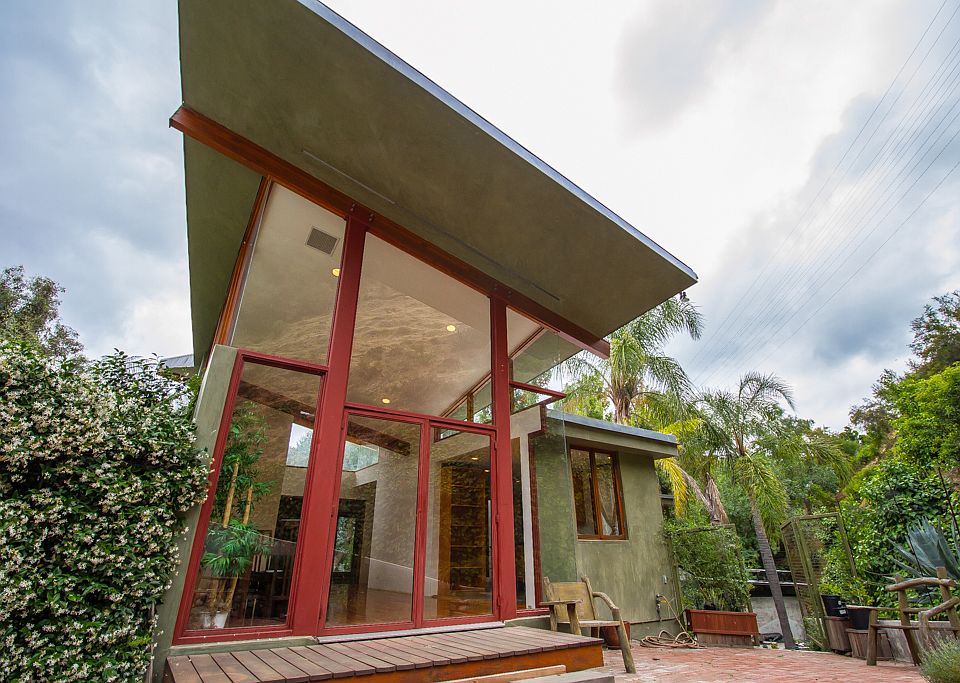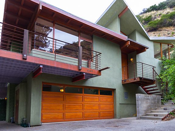 A stunning architectural masterpiece located in Mandeville Canyon off a semi-private driveway. Designed by renowned environmental architect David Hertz, this home is a triumph in home design, function, and elegance. The floor plan has seamless interior flow while transitioning perfectly to the outdoors. All of the rooms are bathed in natural light and overlook the serene and tranquil landscaping. Layered with natural materials and exquisite modern details, the interior is infused with warmth and dimension. The living space includes an open floor plan with walls of glass, skylights, fireplace, a floating staircase, and a wraparound balcony. The entertainer's kitchen is thoughtfully designed with custom built-ins and beautiful finishes. The exceptional master suite is truly its own sanctuary with picturesque views, a true spa-like bathroom, and a walk-in closet. A floating wood staircase leads you to the lower level that features three additional bedrooms and a laundry room.