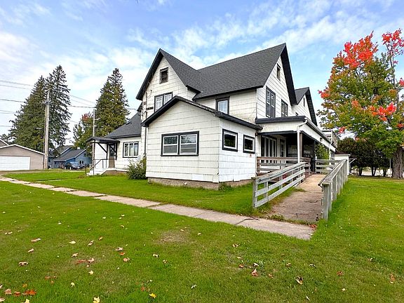 Massive building with extensive potential! Put your imagination and ideas to work here with this building that expands approximately 8300 sqft with amazing character, charm, and curb appeal. The current layout includes a main floor with both an open and enclosed porch, multiple entries with a handicap ramp, large kitchen, walk-in cooler, dining room, living room with picture window, 11 bedrooms, and multiple bathrooms. Three separate staircases lead you upstairs to two activity areas, 12 bedrooms, and multiple bathrooms. The .33-acre lot provides a nice setting with trees and lawn for activities, and a graveled area off the alley provides room for parking. You're minutes from downtown shopping, restaurants & amenities, just 10 minutes from the Chequamegon National Forest, and have direct access to ATV & snowmobile trails. Utilities have been turned off in the building. Call today for more details to see if this property is the perfect opportunity for you!