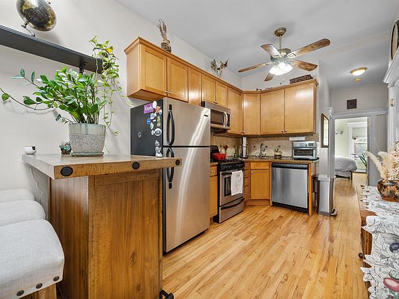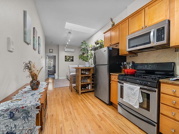 Classic Brownstone in prime Hamilton Park neighborhood in JC. Steps away from iconic park w. community events, dog park, playground, Farmers Market, & more! This top floor unit features 2 bedrooms & 1 bathroom, beautiful hardwood floors, extremely high ceilings, & a skylight that provides ample natural light. Ideal layout for privacy with bedrooms on opposite sides of the unit. Kitchen features granite countertops & SS appliances. Many recent upgrades include: energy efficient split AC/Heat units, resealing of skylight, new dishwasher (6 months old), new hot water heater (less than 2 years old), fresh paint & a recently redone roof. Laundry conveniently located in basement. Pets welcome. HOA includes professional hallway cleaning service, snow removal, water, maintenance of common spaces, & trash removal. Walking distance to Path into NYC & the Hudson-Bergen light rail, + a diverse array of restaurants, shops, gyms & more! Owner has nearby rented parking space that could transfer.