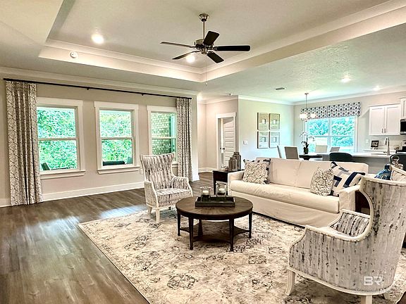 Reduced interest rate available via use of Seller's preferred lender. Ask listing agent for details. Welcome to the brand-new Fairhope community of Longbranch! You don't want to miss this opportunity to make this beautiful, secluded community your home. Nestled among mature trees with a community pond complete with a walking/running trail, Longbranch offers the epitome of Eastern Shore living. This is one of the closest new constructions neighborhoods to downtown Fairhope around! This Destin plan has 2,304 sq ft with 4 bedrooms and 3 baths and a large covered back porch with a beautiful pond view. There is plenty of storage including a 3-car garage. The kitchen features painted shaker style cabinets, a walk-in pantry, quartz countertops and a large center island that provides additional dining to the formal dining room and breakfast area. There is luxury vinyl plank flooring throughout, has smart home features including a Deako lighting package/option and is being built to Gold Fortified specifications for potential savings on insurance. This home is estimated to be completed in August 2024. Call today to schedule a time to see all the available homesites as well as future homesites. This Energy efficient home includes thermal doors, Energy Star rated double pane windows, and 14 SEER Carrier Heat Pump. A 1-year builder's warranty and 10-year structural warranty are included. This home is being built to Gold FORTIFIED Home TM certification, which may save the buyer on their homeowner’s insurance. (See Sales Representative for details.) Images may be of a similar home and property and not necessarily of the subject property. Buyer to verify all information during due diligence.