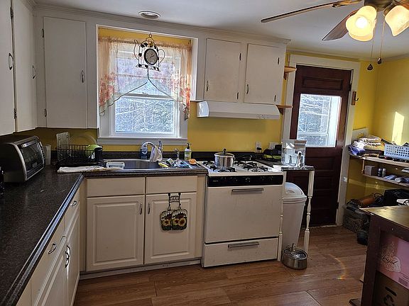 Cape Cod. 2 large bedrooms upstairs and 2 smaller bedrooms downstairs. One bedroom now has the washer and dryer in it. Full basement with dirt floor and a wood stove hooked up to the lined chimney. Front roof 2017, back roof 2025, propane boiler 2025, hot water tank 2023. Many windows replaced. Flower gardens, established rhubarb and elderberry plants. Great location, 5 minutes to Town of Ellsworth, 30 minutes to Bar Harbor, 45 minutes to Bangor.