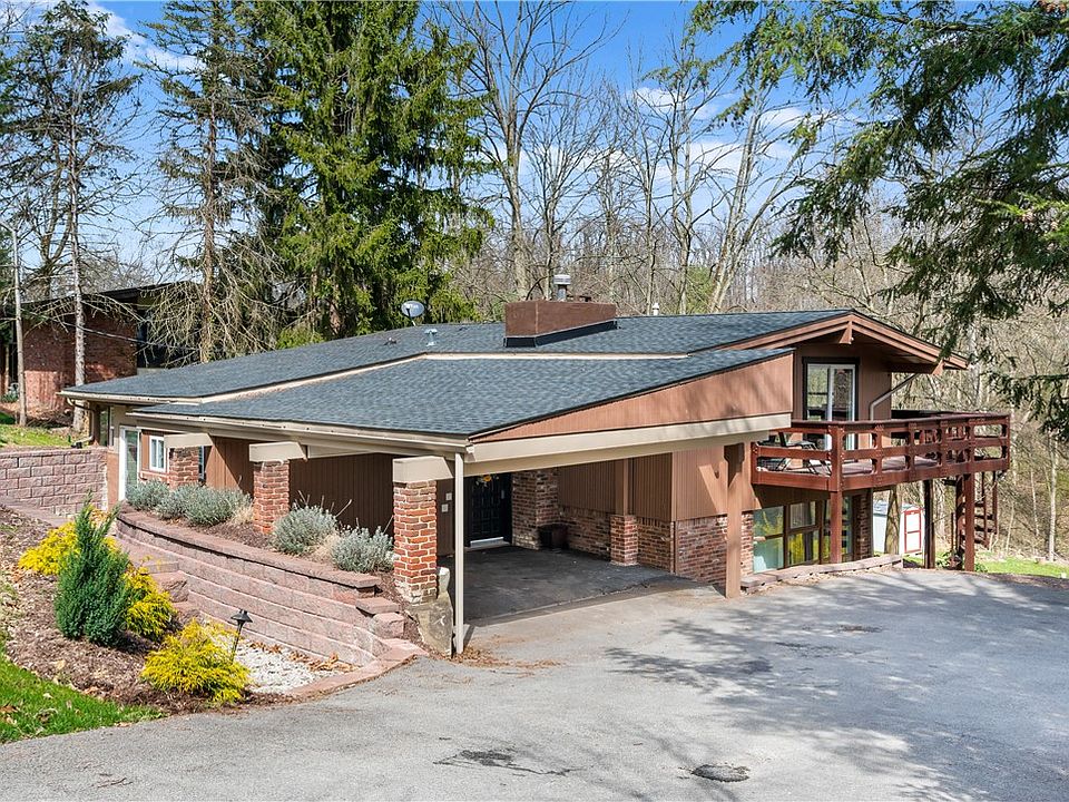 This stunning home in Peters Township seamlessly blends contemporary design with modern luxury. As you enter, guests are welcomed into a spacious foyer, leading down into an expansive living area that offers panoramic views of the private yard through walls of windows. Entertain friends and family by the original fireplace in the living room or gather in the gourmet kitchen, boasting ample cabinetry, generous counter space, stainless steel appliances, and a convenient beverage fridge. Retreat to the tranquil owner's suite with LVP floors, vaulted ceilings, and a private bathroom. Upstairs you will find three spacious additional bedrooms, featuring large windows and access to a sprawling wrap-around deck overlooking the private yard. The half acre lot offers plenty of room for entertaining, kids to play, or fun for furry friends! Moments away from shopping and dining.