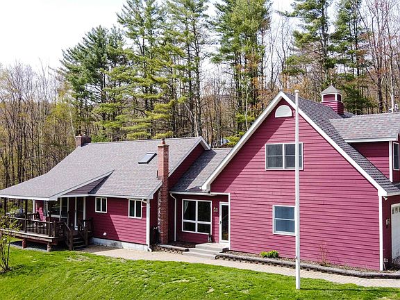Get your thrill on Blueberry Hill! Spacious home on 8 acres nestled on West Mountain between Shaftsbury, VT and White Creek, NY. Privacy and nature with the local wildlife visiting on occasion. Enjoy the seclusion, yet access to the world with Fiberoptic hi speed internet. The office space right off the mudroom entry is perfect for working from home. This Vermont property has been lovingly maintained and upgraded through the years including the huge addition built in 2003 that is the oversized 2-3 car garage, primary bedroom with bathroom and another large bedroom. The original house has a vaulted ceiling in great room that opens to kitchen and to door with covered deck taking in the south views. Both kitchen and bathroom have custom built wood cabinets. The kitchen has newer stainless appliances with a double oven. Beautiful tile backsplash as well. All of the bedrooms and great room have new wood flooring. The guest bedroom is up a separate stairs from the great room. A first fl bedroom and first fl full bathroom, slate tiled entry area and office complete the first floor. There is a woodstove in the great room that keeps the well insulated home toasty warm. In the cold of winter, you have 2 other heat options-a wood furnace, which is great since you have plenty of wood to get for free on your property, or you can use the oil boiler that heats with Runtel baseboard and radiant floor heat. Outdoor 21x16 shed. New Roof and cupala in 2022. Hardyboard siding and landscaped.