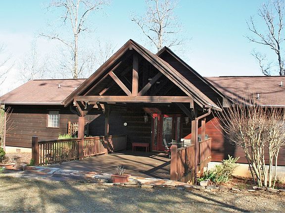 Immaculate one level home with mountain views and river access located in desirable Highland Creek subdivision. This prow front home has excellent views and porches galore. Open floor plan with a large living area, beautiful rock fireplace, wood ceilings, a well-appointed kitchen, laundry area and split bedroom floorplan. The oversized master bedroom includes a spacious bath with a walk in shower and jetted tub. The home is tastefully decorated and furnished. Easy access with room for additional parking. Convenient to town, this community has paved roads and private community access to the Hiawassee River. The pavilion affords a place to gather or enjoy fishing/ swimming. This is a MUST SEE.