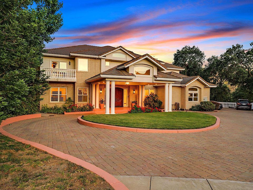 Tucked away at the end of a private cul-de-sac in South Pleasanton, this rarely available Carriage Hills Estates home is the total package! Sitting on just over an acre, this nearly 5,000 sq.ft. beauty offers space, privacy, and sweeping views of open space and the Pleasanton Ridge. The vibe? Warm, welcoming, and filled with great energy. Gorgeous and super high ceilings at the entry way bring in lots of natural light. The kitchen is a dream - quartzite counters, stainless steel appliances, & a Subzero fridge. Need room for everyone? Multiple bedrooms and full baths downstairs are perfect for guests or multigenerational living. Upstairs, you'll find two huge primary suites, both with their own balconies and peaceful views. The main suite even has a cozy retreat - ideal for coffee mornings or a quiet work-from-home setup. Laundry hookups on both floors, no HOA, and OWNED SOLAR too! Oversized driveway fits all your toys. This estate is designed for privacy, comfort, and unforgettable entertaining! Close to award-winning schools, Castlewood Country Club, Callippe Golf Course, hiking and biking trails and charming Downtown Pleasanton.