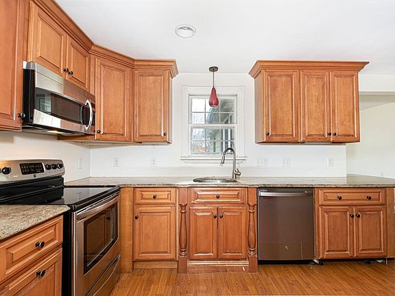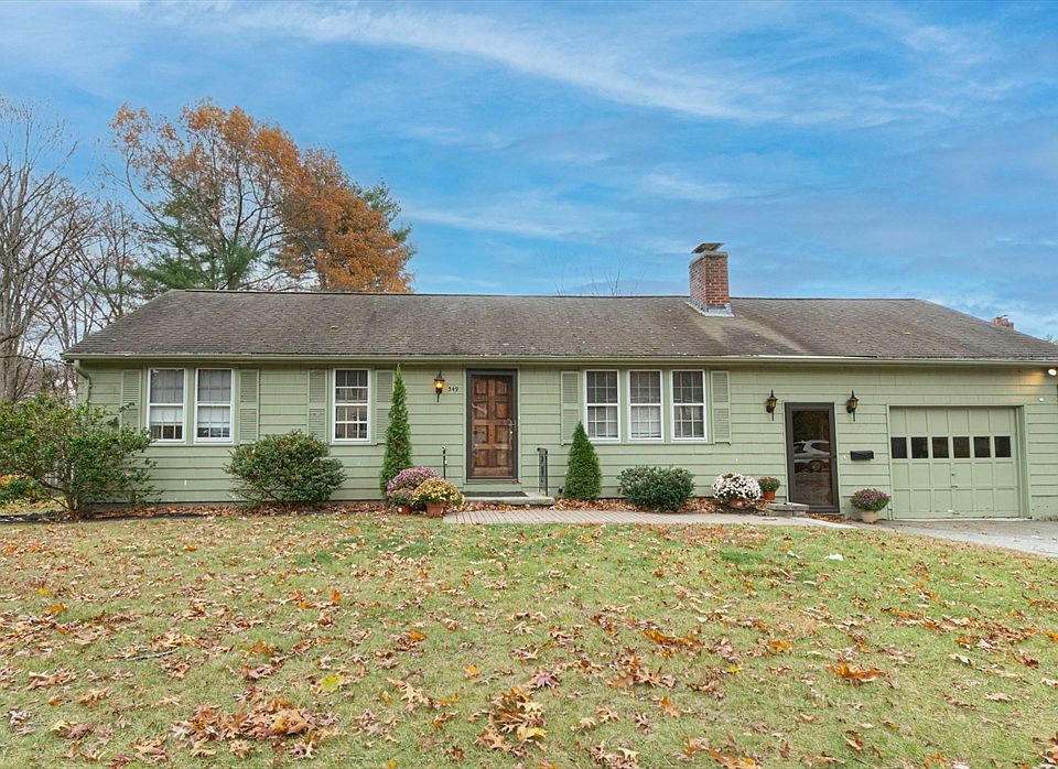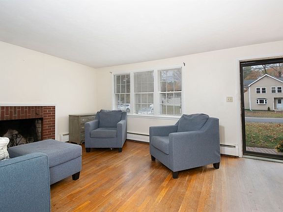 Great opportunity to create equity. Spacious ranch with 3+ bedrooms, office, fireplaced living room, large dining room with built-in, and a generous family room. Long-time owner added a substantial addition. Kitchen remodeled in 2011 with maple cabinets. Fixtures in both baths replaced except tub. FHW boiler with 2 zones replaced in 2020; water heater and oil tank also 2020. Roof is 15–20 years old with 30-year architectural shingles. Attic has recent insulation. With some cosmetic updates this home will shine. Back porch and pressure treated deck leads to large backyard with shed. Mud room and attached 1-car garage. Great location near major routes and shopping.