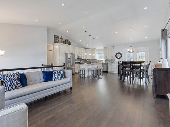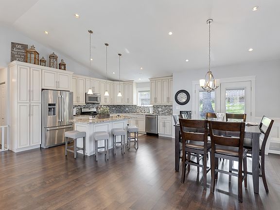 Schedule your movers! Move-in-ready raised ranch with 3 BRs and 2.1 baths in almost 2,100 square feet. The main level in this home features wood laminate flooring throughout and a wide open floor plan ideal for entertaining. It includes the kitchen with a large island, eating area and living room. Kitchen has newer stainless steel appliances, 42-inch cabinets, granite countertops and a vaulted ceiling. The dining and living room areas have attractive wainscoting paneling. Also on the main level are three bedrooms. The main bedroom has a vaulted ceiling, a private ensuite bath with a walk-in shower and a double vanity. There also is a large walk-in closet in the main bedroom. The other two bedrooms have generous closets as well as wood laminate floors. The lower level has a large family room with decorative wainscoting that is currently used as a home office. There also is a wood burning fireplace as well as a half bath near the family room. A laundry room with a sink is also in the lower level and features a newer washer and dryer. There is a large workroom behind the 2-car garage that can also be used for storage. The backyard has a massive 46x12 wood deck for outside entertainment. Recent home improvements include new roof and gutter guards (2023), new furnace & AC (2021) and whole house blinds (2019). This home is a 2-minute drive to the Fox River Grove Metra train station and close to the Fox River, library, park, ponds, shopping and dining.