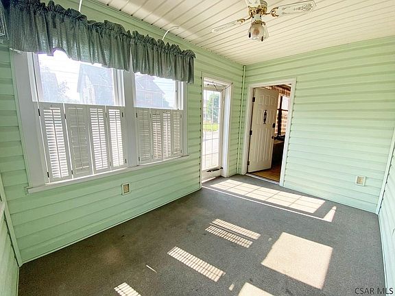 Call today to tour this 3 Bedroom, 1.5 Bath two story vinyl sided home in the City of Johnstown - West End! The main floor features a 3 season porch, Mud Room with ceramic tile floor & coat closet, Foyer, spacious Living Room with gas fireplace & built-in shelves, separate Dining Room with parquet floors, Kitchen with oak cabinets & appliances included & rear Mud Room with great storage & access to the backyard. Three Bedrooms with carpet & ceiling fans & a full Bathroom with 2 linen closets & separate water closet on the 2nd floor. The basement has a laundry area, 1/2 Bath & Rec Room with built-in bar & tap system. Dual pane windows. Walk-up attic. Partially fenced backyard with deck. Detached 2 car garage w/concrete parking area in back.