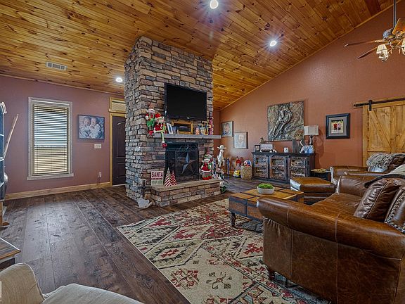 Introducing this exquisite country ranch-style home with a lodge feel and rustic country charm. Nestled on 5 acres of breathtaking land, this property offers a true country ranch lifestyle. Formerly used for cattle, horses, and chickens, it's perfect for those seeking an authentic rural experience. The property features a cattle loading arena and round pen, catering to your livestock needs. Additionally, a barn with electric awaits, complete with stalls, a tack room, and a hay room. Horse enthusiasts will appreciate the fully lit riding arena, allowing for nighttime riding enjoyment. For those who enjoy tinkering or need extra living or entertaining space, a spacious 30x40 shop awaits. With 9ft ceilings, two large doors (12x7 and 8x7), and a 12ft lean-to on the side, this shop is perfect for entertainment and hobbies. It even includes a bedroom, bathroom, and kitchenette with its own central heat and air, providing ultimate comfort. A smaller shop with electricity and a garage door is also available. As you make your way to the 2661sf home, you'll be captivated by its charm. Boasting three beautiful bedrooms and two full bathrooms, this ranch-style home offers comfort and style. The open concept kitchen and family room are captivating lodge feel with stunning vaulted ceilings and a magnificent stone fireplace, creating a cozy and inviting atmosphere. The kitchen is a chef's delight, with ample cabinet space, country views, and an abundance of natural light streaming in from the back screened-in porch. The master suite is generously sized, featuring a large walk-in closet and an exquisite master bathroom with a stone walk-in shower and tasteful accents. The two additional bedrooms and bathroom are equally detailed, showcasing their own unique charm. The home also includes an 8x12 safe room, ensuring your safety during Arkansas weather conditions. The home also has an generator for when the electric goes out. Completing this remarkable property is a spacious laundry room and an additional versatile room that can be used as a guest room, office, or craft room - the choice is yours. This one-of-a-kind property needs to be experienced in person. Don't miss the opportunity to step into the home of your dreams at this enchanting ranch. Call today and make it yours or set up your home tour.