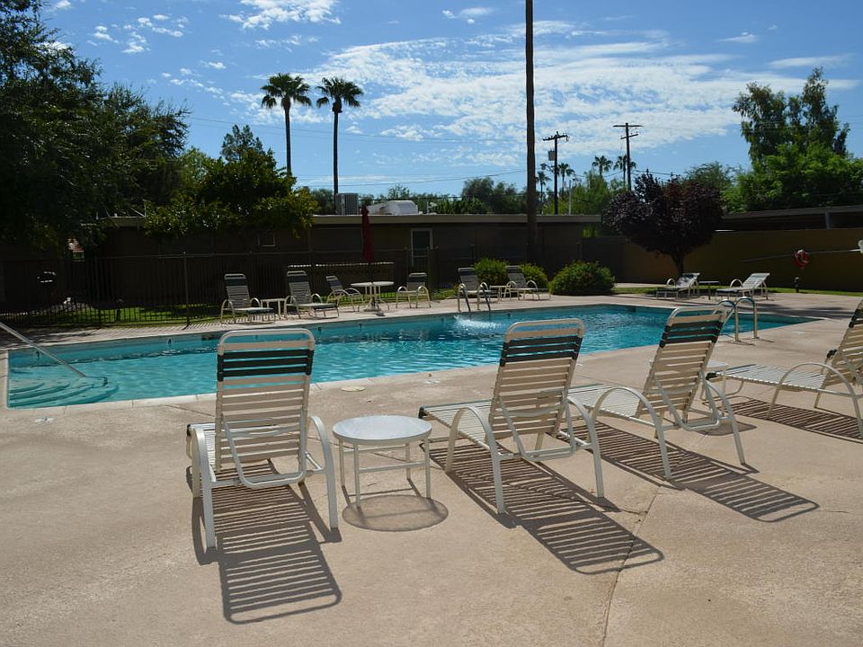 Great Downtown Location in Gated Community, Windsor Place. Nice sized one bedroom one bath single level home with open kitchen and living area. Tile throughout. Balcony faces North to the court yard. Green common area and walkways, large pool area, club house, laundry. Elevators or stairs for easy access. Close to down town, light rail, dining, shopping, schools, sports and so much more. HOA includes exterior building maintenance, blanket insurance policy, water, sewer, garbage collection , pest control and electricity.