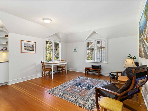 Steep-gabled character homeTreetop viewsLarge windowsBright den