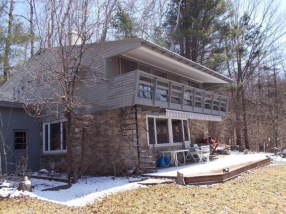 BIG PRICE REDUCTION!Highland Road:This Unique 2 Bedroom Contemporary nestled on 2.70 acres gives you that country feeling. Front Porch overlooking an in ground pool with decking all around it (pool needs work). Walking into the bottom level to a spacious living room with sunshine galore and a fireplace with a wood stove insert for extra warmth in the winter time. Kitchen and washer/dryer are also on the bottom level with a half bath. The second floor features an additional kitchen, Sitting room and master bedroom, guest bedroom and a backroom for crafting, painting or a workshop. There is a house generator. Detached 2 Car garage with storage above and a 1 car garage attached to the house with a breeze way to the house. The grounds were once gorgeous and needs someone to come love them again. Come see for yourself, the unique style of this lovely home.