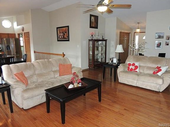 Gorgeous 3 bed 3 bath ranch w/ open floor plan & amazing curb appeal. The great room has soaring vaulted ceilings, gorgeous hardwood floors, ceiling fan & stunning marble fireplace flanked by floor to ceiling windows. The kitchen also features vaulted ceilings, breakfast bar, modern lighting, SS appliances, ceramic tile floor & walk in pantry. The breakfast room has a modern chandelier, beautiful wood floors & large bay window w/door that leads out to a large, freshly stained wood deck perfect for entertaining. The master bedroom suite also has vaulted ceilings, large walk-in closet & bay window w/door that leads to a private deck. The master bath has a walk in shower & over sized vanity. There are 2 more spacious bedrooms w/ample closet space, ceiling fans & a full updated bath all on the main level . The open spindled staircase leads to a walk out LL w/ a full bath. Enjoy the breathtaking deck views, awesome fenced backyard, main floor laundry/mud room & an over sized 3 car garage.