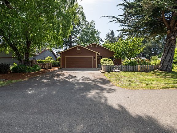 This beautiful home for sale in Bandon, Oregon won't last! Built in 1990 by renowned builder John Parks, it offers two bedrooms, two baths with 1732 square feet of living space and charming mature landscape that will make you feel right at home. This open concept home has a spacious kitchen with breakfast bar overlooking the dining room and living room with impressive wood beam ceiling and a warm sunroom with skylights. Outside, enjoy the convenience of a fenced-in yard with storage shed and covered patio for outdoor relaxation. Complete with a two car garage and laundry room for additional storage, this home is sure to meet your needs!