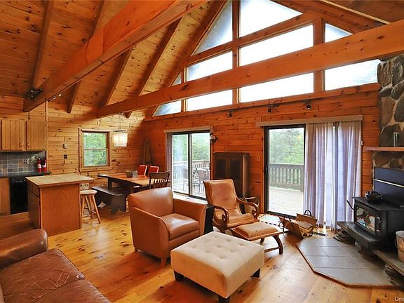 Private chalet style home on 5 acres with lovely mountain views. Sit on the deck and stargaze at night or enjoy the sunshine and breezes during the day. Inside you'll find everything you need: open floorplan, cathedral ceiling, large windows for natural light, eat in kitchen, living room with woodstove, and wood floors. There are two bedrooms and full bath, plus loft area with half bath. Go downstairs and enjoy a family room with french doors --for an easy walk outdoors. This special property provides a nice blend of comfortable indoor living space set amidst a natural outdoor playground. Conveniently close to Roscoe for restaurants, groceries, brewery and rivers for fly fishing. House comes with furnishings, so you can move right in!