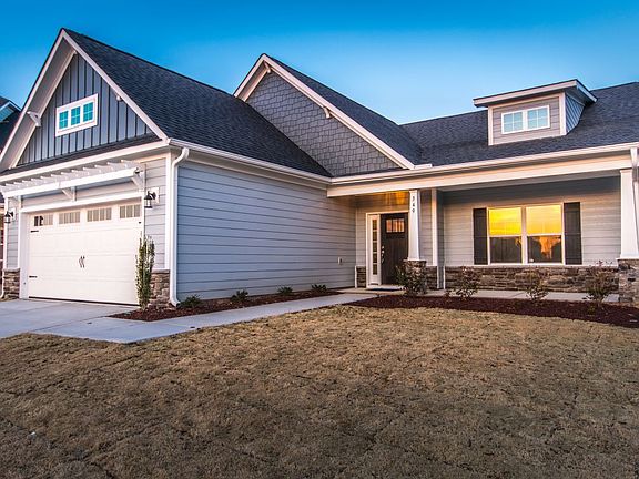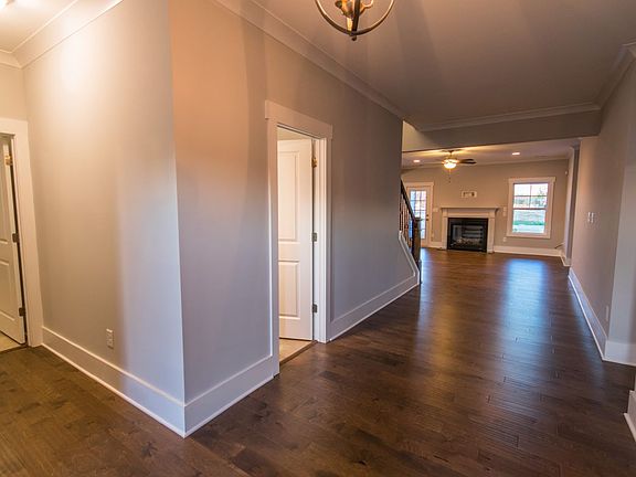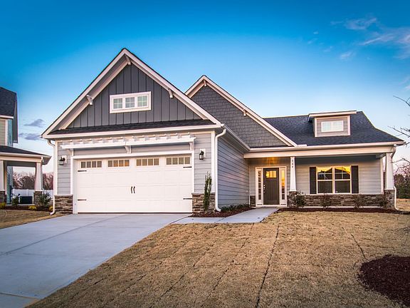 This home features a master suite with beautiful tray ceiling, spacious walk-in closet, his and hers sinks with cultured marble vanity, private water closet, linen closet and walk-in shower.. Great room with gas fireplace . Covered porch with grill patio. Kitchen with bar top seating white cabinets, granite counter tops, tile back splash, stainless microwave, dishwasher, double ovens and gas cook top.. Dining room with coffered ceiling and wainscoting detail. Second bedroom or study on first floor with access to hall bathroom. . Second floor with 2 additional bedrooms or bedroom and bonus room.. Hardwood flooring in foyer, dining room, kitchen and great room.. Cement board siding with brick skirt, stone and shake accents, dimensional shingles and accent metal roofing..
