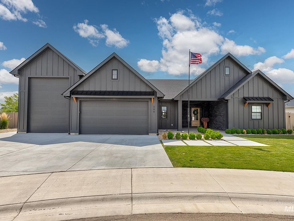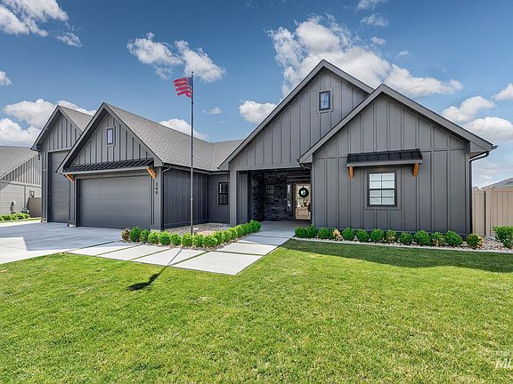 Gorgeous designer home in one of Fruitland most desirable neighborhoods! This stunning home features exquisite craftsmanship throughout with 10' ceilings, smart home media space, custom cabinetry, luxury lighting, select quartz and top of the line fixtures! This kitchen boasts high end stainless steel appliances, an oversized chefs island, beautiful floating shelves, a wine fridge and a wonderful butlers pantry with a coffee bar. The inspiring master suite features high vaulted ceilings, a spa like bathroom with a roomy dual head walk in shower, a large custom closet and double doors to the tranquil patio setting. The covered patio features an alluring gas fireplace, the yard fully fenced with a concrete walkway around to the front. It is nicely upgraded with custom finish garage flooring throughout the spacious RV/Shop area, garage and back patio. The shop also features a 14' overhead door, 220v RV hookup, gas wall heater and outstanding lighting for any home project. An immaculate home with all the extras!