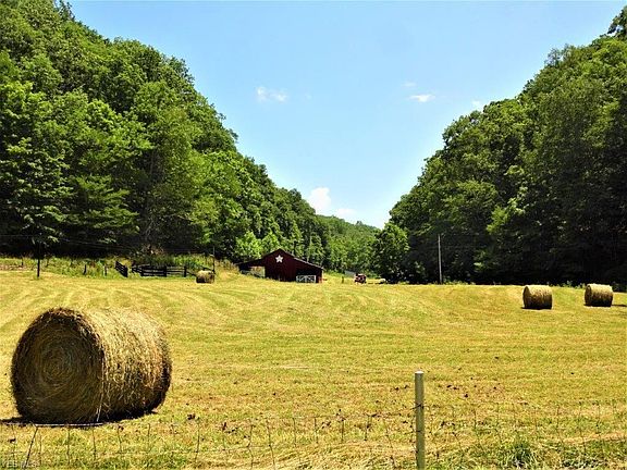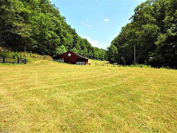 Beautiful 5.15 acres. Nice home, garage, barn, outbuildings, level fenced acres. Home offers 2 bedrooms (Master on 1st floor) 2 full baths, spacious eat in kitchen, abundant cabinetry, living room, home office, dining combo, mud/exercise room, covered front porch. Full unfinished walkout basement. Detached 2 car garage, paved driveway. Nice large barn with stalls, concrete floor. Large equipment shed, outbuildings, this level 5+ acres is fenced perfect for your livestock, or buildings sites. Hay-crop. Small stream. Property borders paved country road, easy access. I-79 only 15 minute drive. Perfect country location!